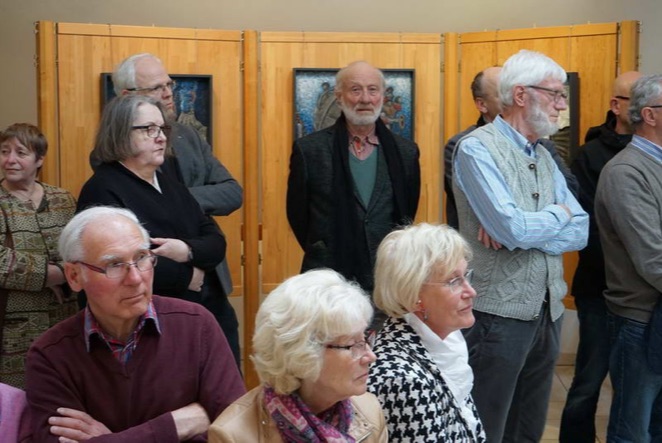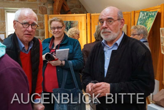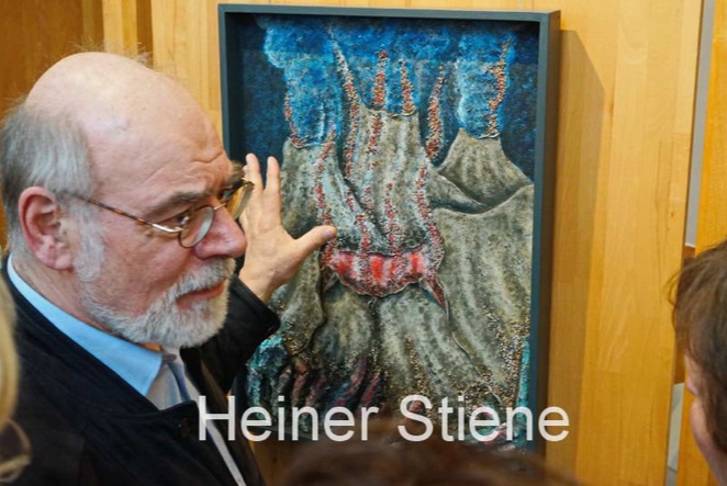 Der selber mit drei Bildern vertretene Warburger Künstler Heiner Stiene hatte als Kurator die 36 künstlerischen Arbeiten ausgewählt. Der Ausstellungsraum des Hammerhofes lässt Nähe zwischen den Kunstschaffenden und den Besuchern der Vernissage zu. So kam es nach den einführenden Worten und den Feuer in Eis verwandelnden Zaubereien von David Wedegärtner aus Paderborn zu intensivem Gedankenaustausch über die ausgestellten Werke und das Thema der Ausstellung.