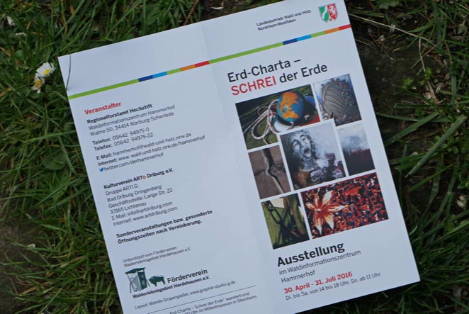 Die Veranstalter, das Regionalforstamt Hochstift Waldinformationszentrum Hammerhof und die Gruppe ART I.G. im Kulturverein ARTD Driburg haben ihre kreativen Kräfte gebündelt, um mit den Mitteln der Kunst in dieser Gemeinschaftsausstellung auf die Erd-Charta und die dort formulierten Herausforderungen als gemeinsame Aufgabe aller Menschen aufmerksam zu machen - es entstehen Bilder in den Köpfen der Betrachter, die zu weiterem Nachdenken anregen.