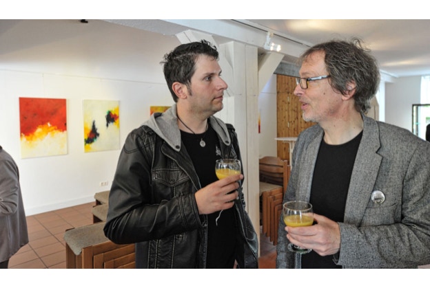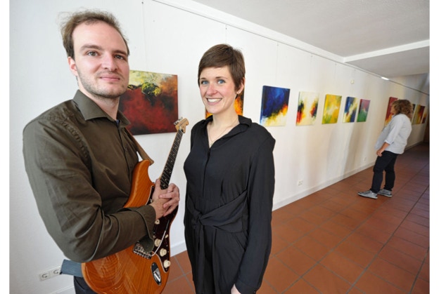 Die musikalische Begleitung der Vernissage entwickelte sich fast zu einem eigenen Event: Erik Brenner und Esther Kellerbach begeisterten die Gäste als Duo „Saturnine Sunday“. Eriks gefühlvolles Gitarrenspiel überzeugte nicht nur mit Tempowechsel und Laustärkevariation. Esthers strahlende Stimme begeisterte alle Gäste der Vernissage mit ihrem Reichtum an Variation. Zusammen waren sie an diesem Tag unschlagbar.